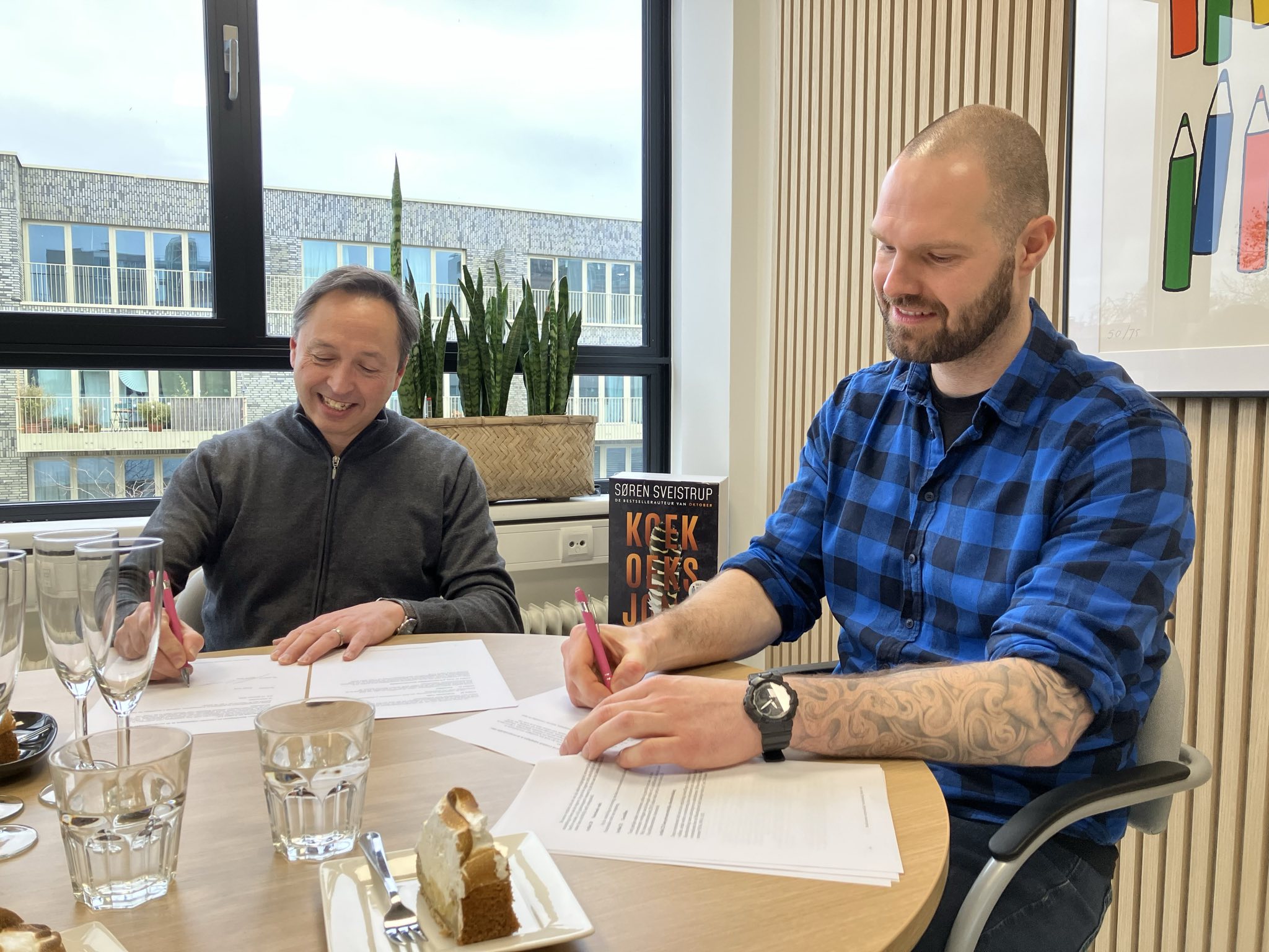(Foto: links Steven Maat, uitgever fictie bij A.W. Bruna en rechts Frank Vork)